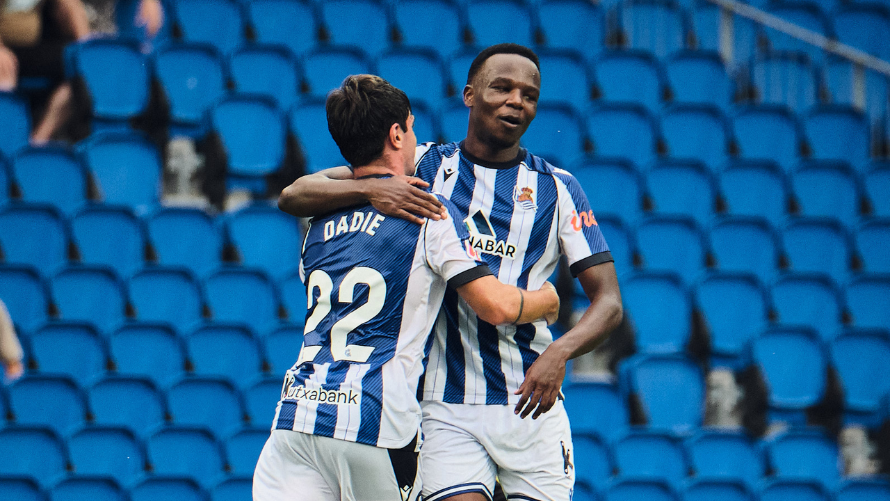 Job Ochieng celebra su gol en el Sanse@RSZubieta_
