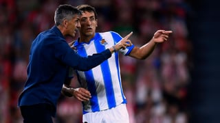 "No te puedo decir otra cosa, es así. De momento, los últimos partidos ha sido el delantero centro Oyarzabal y veis el trabajo que hace, el nivel de asociación que le da al equipo y los goles, los números. Sobran comentarios del por qué. ¿Sadiq está mal? No. ¿André está mal? No. André está en su mejor momento de la temporada y Sadiq no está mal. Lo que pasa es que es Mikel el que está muy bien, Becker está apretando y muy bien, Barrene, la vuelta de Take... la competencia es enorme. Evidentemente, Sadiq y André son muy buenos jugadores cuando están bien, pero la competencia es muy dura y yo tengo que decidir, para eso me pagan. A veces acertaré, a veces no, pero el que decide soy yo".