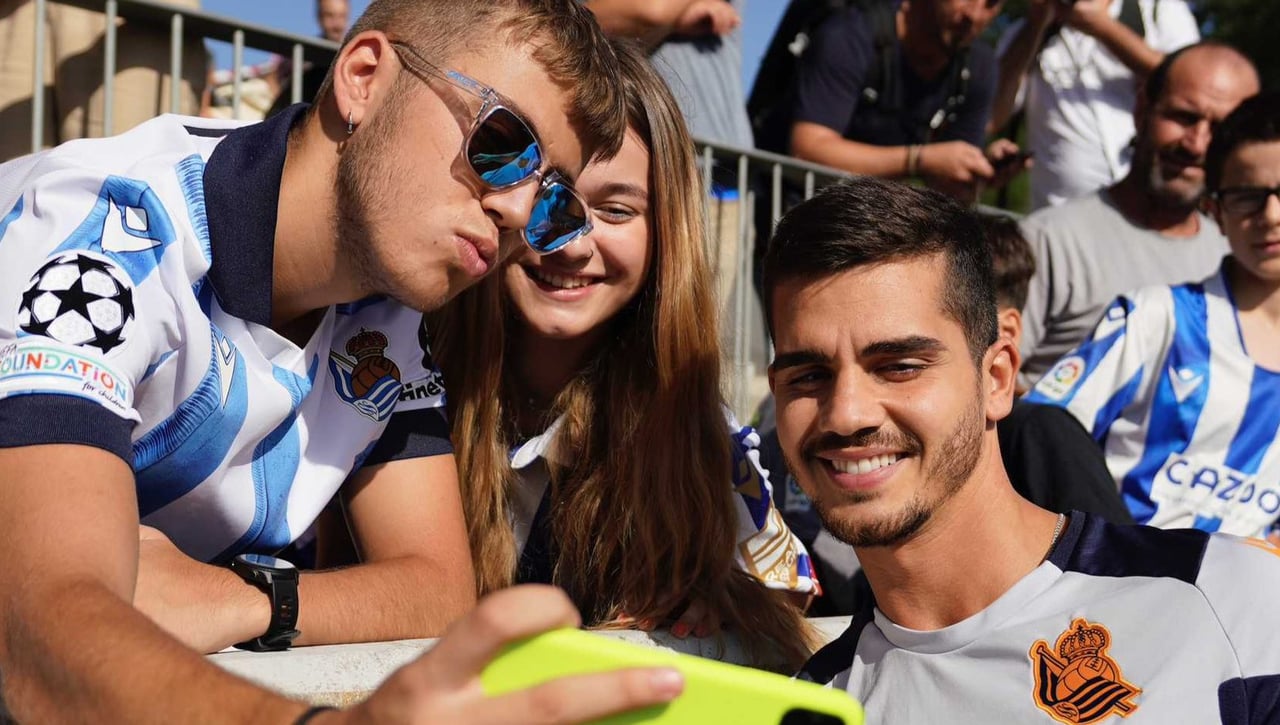 El entrenamiento ha finalizado con los jugadores acudiendo a la grada para hacerse fotos y firmar autógrafos a los aficionados. André Silva y el japonés Take Kubo han sido los más solicitados en una mañana de carácter festiva en San Sebastián. La ilusión es total en un año donde la Real Sociedad competirá en la UEFA Champions League.