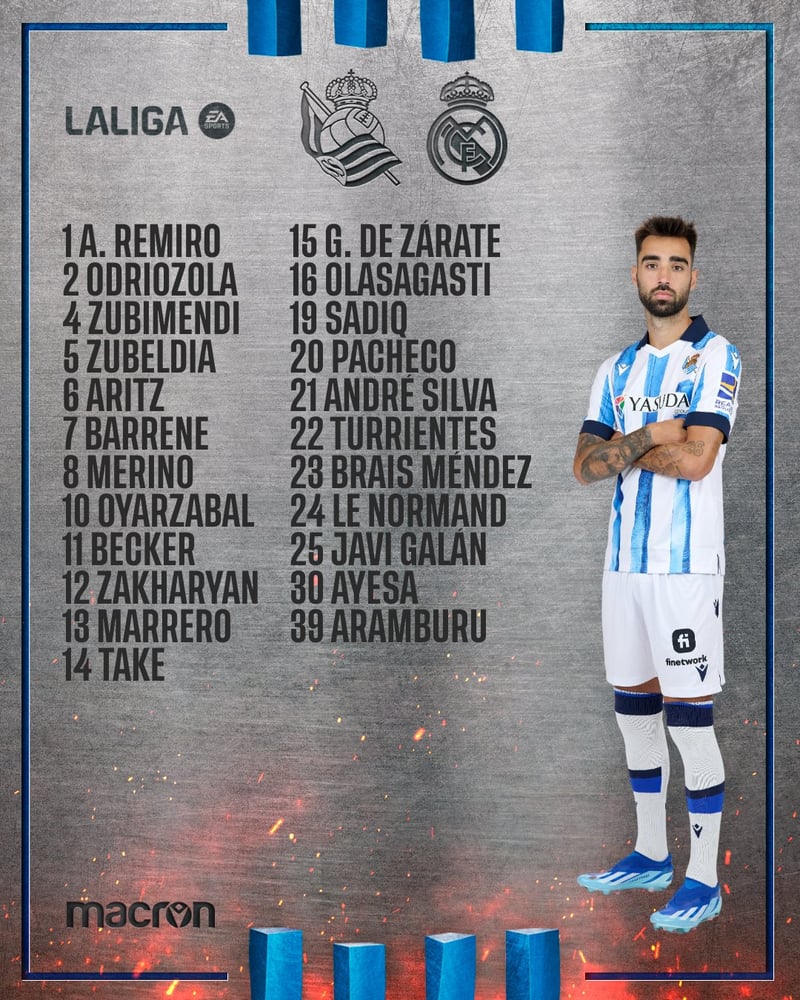 "Es un partido especial para Odriozola, pero también sería especial para Elustondo o para Aramburu. Es especial para todos. Este tipo de partidos los quieren jugar todos los jugadores. Evidentemente él ha jugado allí y es el que más les conoce en el día a día. Es algo que está ahí, pero no es algo que me va a hacer decidir por su pasado madridista, sino porque entiendo que nos va a ayudar a ser mejores y a hacer mejor las cosas para poder ganar el partido".