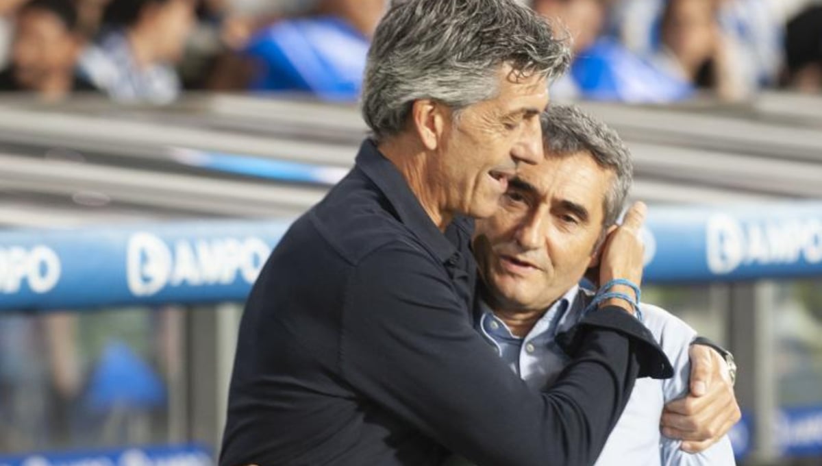 Imanol Alguacil saludando a Ernesto Valverde antes del derbi vascoUES