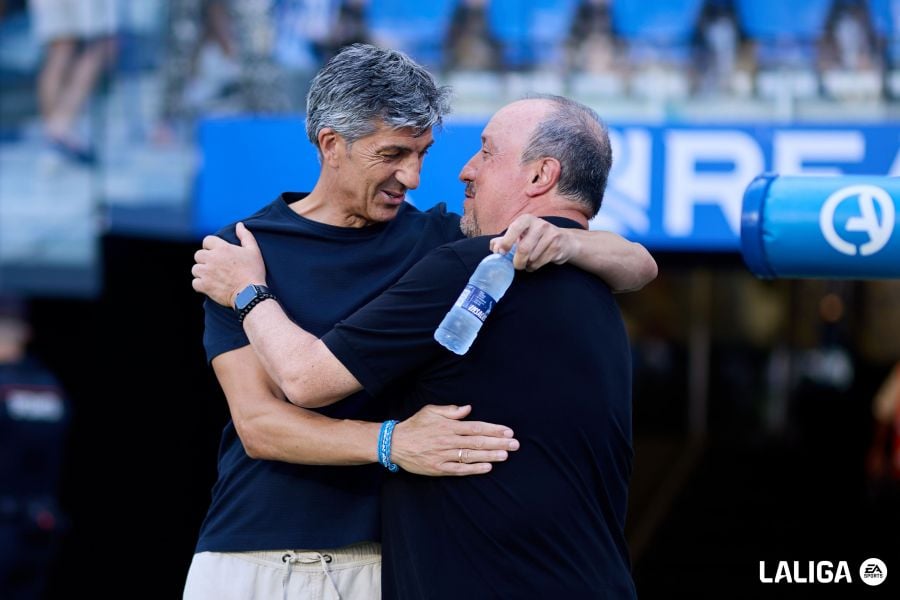 Imanol Alguacil saludando a Rafa Benítez antes del encuentro ante el Celta de VigoLaLiga EA Sports