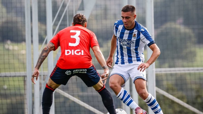 Jon Karrikaburu ha marcado los dos goles de la Real Sociedad en el amistoso que ha jugado el equipo vasco contra CA Osasuna en la mañana de este jueves 9 de octubre. No es un encuentro para sacar muchas consecuencias pero que sí sirve a algunos de esos jugadores que no tenían apenas oportunidades para decirle a su entrenador que tiene nivel suficiente para rendir en la élite.