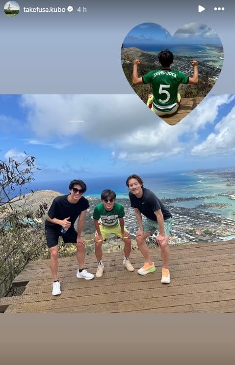 No es que el japonés se haya ido a jugar pachangas pero sí que se le ha visto con otra camiseta que no es la de la Real Sociedad. El extremo nipón, que ya disfruta de sus vacaciones, no ha dudado en colocarle la camiseta del Sporting de Portugal y hacerse una foto con ella, en concreto se trata de la camiseta de su compatriota y compañero de selección Hidemasa Morita, que porta el dorsal número 5. Una simple anécdota que no tiene ningún trasfondo con un supuesto interés del equipo luso y sí con un detalle de un amigo que presume de otro durante sus vacaciones.