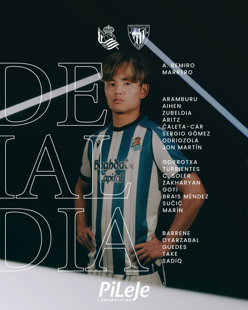 De esta forma, siendo las dos grandes novedades en la citación donostiarra los regresos de Kubo y Sadiq, la lista al completo la conforman los siguientes nombres: Álex Remiro, Marrero, Aramburu, Aihen, Zubeldia, Aritz, Caleta-Car, Sergio Gómez, Odriozola, Jon Martín, Gorrotxta, Turrientes, Carlos Soler, Zakharyan, Goti, Brais Méndez, Sucic, Marín, Barrenetxea, Oyarzabal, Guedes, Take Kubo y Sadiq.