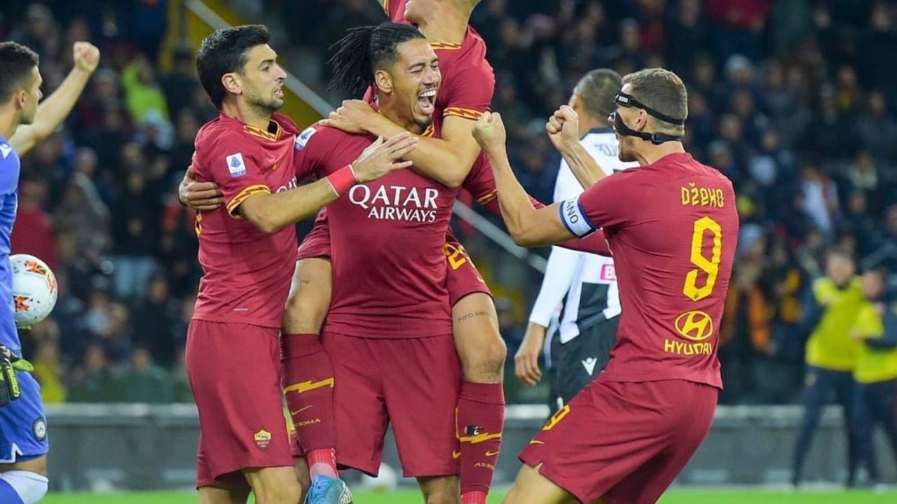 Smalling, en el centro de la imagen, celebra un tanto conseguido con la Roma.Twitter / @ChrisSmalling