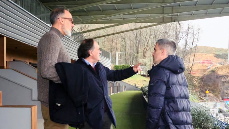 Domingo muy ajetreado el que ha tenido Matarazzo, quien llegaba a primera hora de la mañana a San Sebastián para dirigirse directamente a Zubieta. Acompañado por Jokin Aperribay, presidente de la Real Sociedad, y por Erik Bretos, director deportivo del club, ha conocido las instalaciones interiores de primera mano así como los campos de entrenamiento en un ambiente muy relajado y escuchando atentamente tanto a Aperribay como a Bretos.