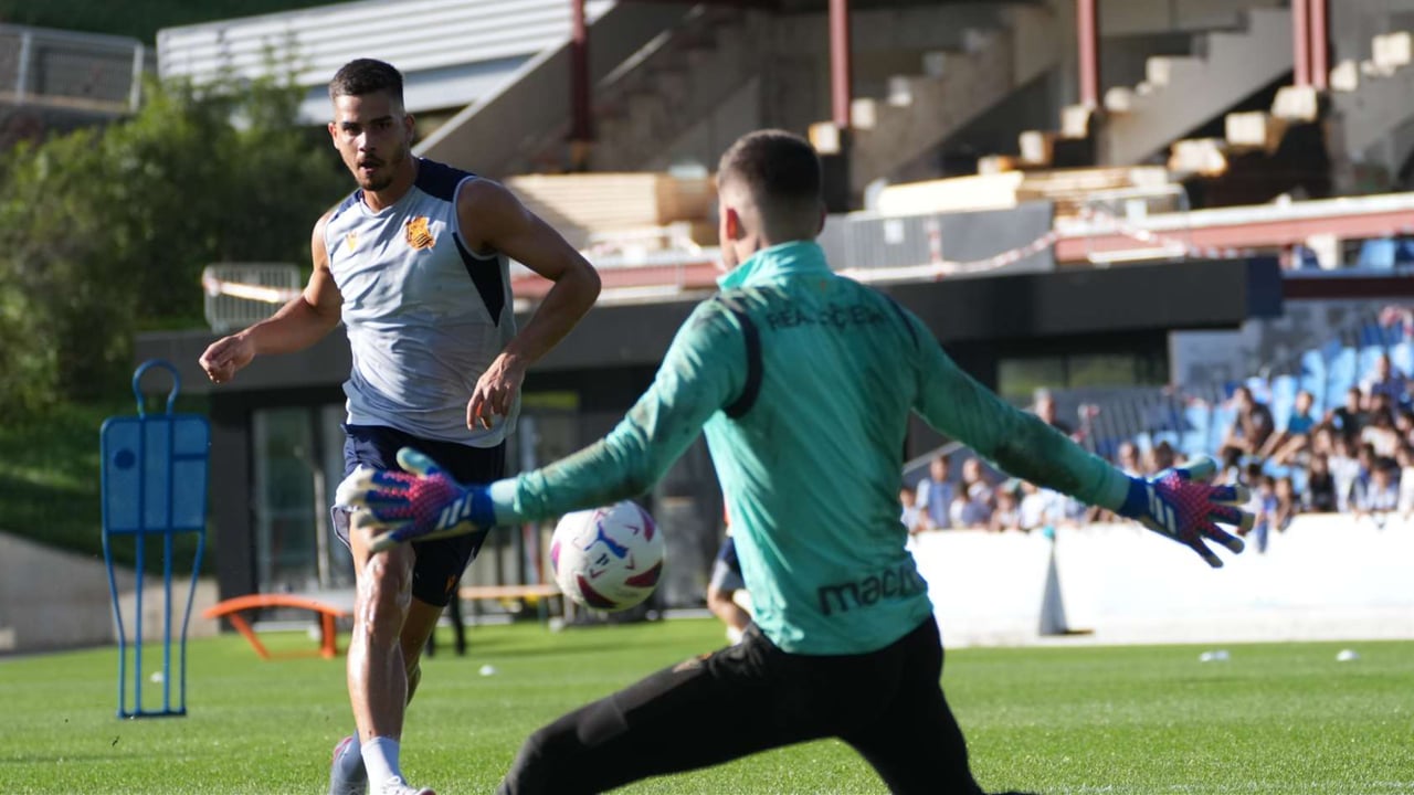 André Silva fue el centro de atención en el último entrenamiento de la Real Sociedad de la semana pasada, que se llevó a cabo a puertas abiertas. La mayoría de los seguidores que se congregaron en Zubieta tenían la mirada puesta en el delantero portugués. La afición tenía grandes expectativas para el jugador, cedido por el RB Leipzig, y estaba ansiosa por celebrar sus goles con la camiseta txuri-urdin. A pesar de estar en todas las convocatorias desde su llegada, solo había tenido la oportunidad de jugar en los partidos contra el Athletic Club y el Atlético de Madrid, ingresando como suplente en ambos.