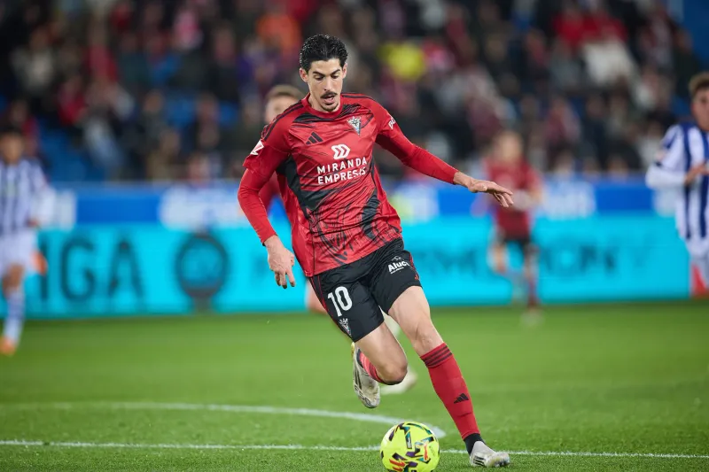 El delantero sevillano firmó su gol número 14 con el Mirandés, donde se encuentra cedido, e igualó de esa forma su mejor marca en el fútbol profesional que data de la 19/20 con la camiseta del Granada