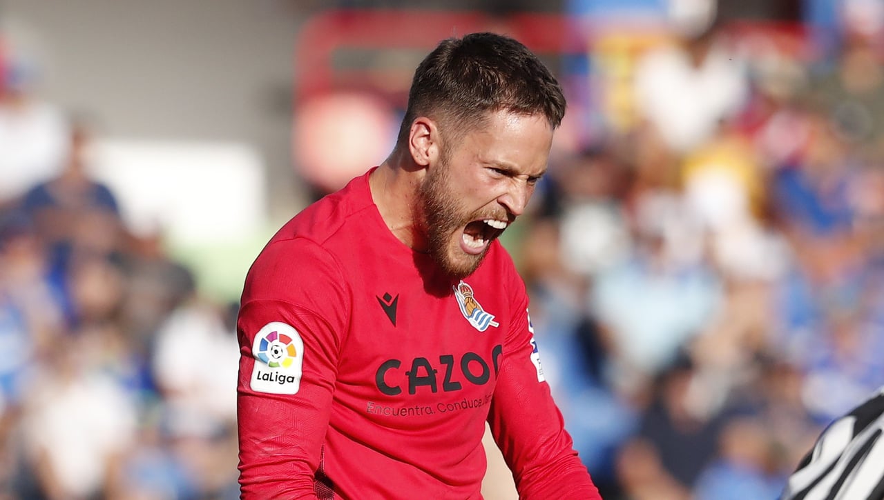 Álex Remiro, portero de la Real Sociedad, ha sido uno de los añorados por algunos en la lista de convocados de la nueva selección española de Luis de la Fuente. El guardameta no piensa en ello y se centra en su equipo y en seguir mejorando. "En cuanto a sensaciones sí, estoy a gusto y creo que he mejorado respecto a la temporada anterior y la anterior y la anterior... Mi objetivo es no estancarme y seguir mejorando. Me encuentro bien y estoy contento por cómo están saliendo las cosas".
