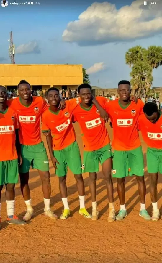 Ahora, ha sido el turno del propio Sadiq, quien también enfundado en una camiseta del Valencia, en este caso la naranja flúor de visitante, ha llamado la atención en las redes sociales poco después de levantar polémica por sus palabras en las que se supone mandaba un dardo a la Real Sociedad. Siempre comprometido con su pueblo, el 'Látigo de Kaduna' ha aprovechado para jugar una clásica pachanga de verano para la que repartió equipaciones del Valencia.