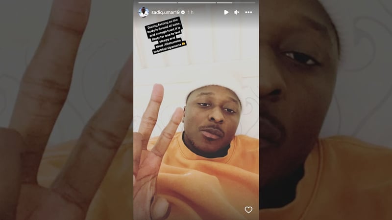 El nigeriano se encuentra actualmente haciendo el autoimpuesto ayuno derivado del Ramadán al ser musulmán y profesar la religión islámica. Consiste en un periodo de ayuno entre la comunidad musulmana que supone "un tiempo de recogimiento, mayor acercamiento a su Dios y de purificación del alma mediante la autodisciplina y el autosacrificio".