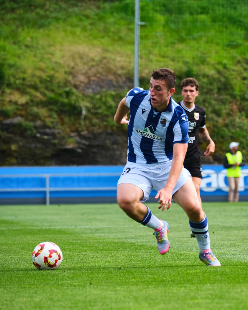 El joven jugador de la Real Sociedad bajó al filial para ayudar a sus compañeros a lograr el ascenso a Segunda división. El atacante dejó un gol y una expulsión en las semifinales