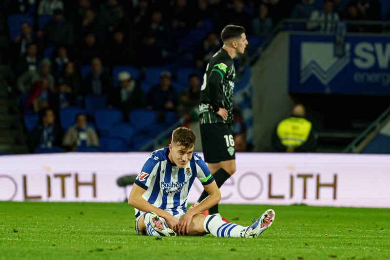 Barrenetxea, futbolista de la Real Sociedad, apunta a estar disponible en el partido contra el Real Oviedo.IMAGO