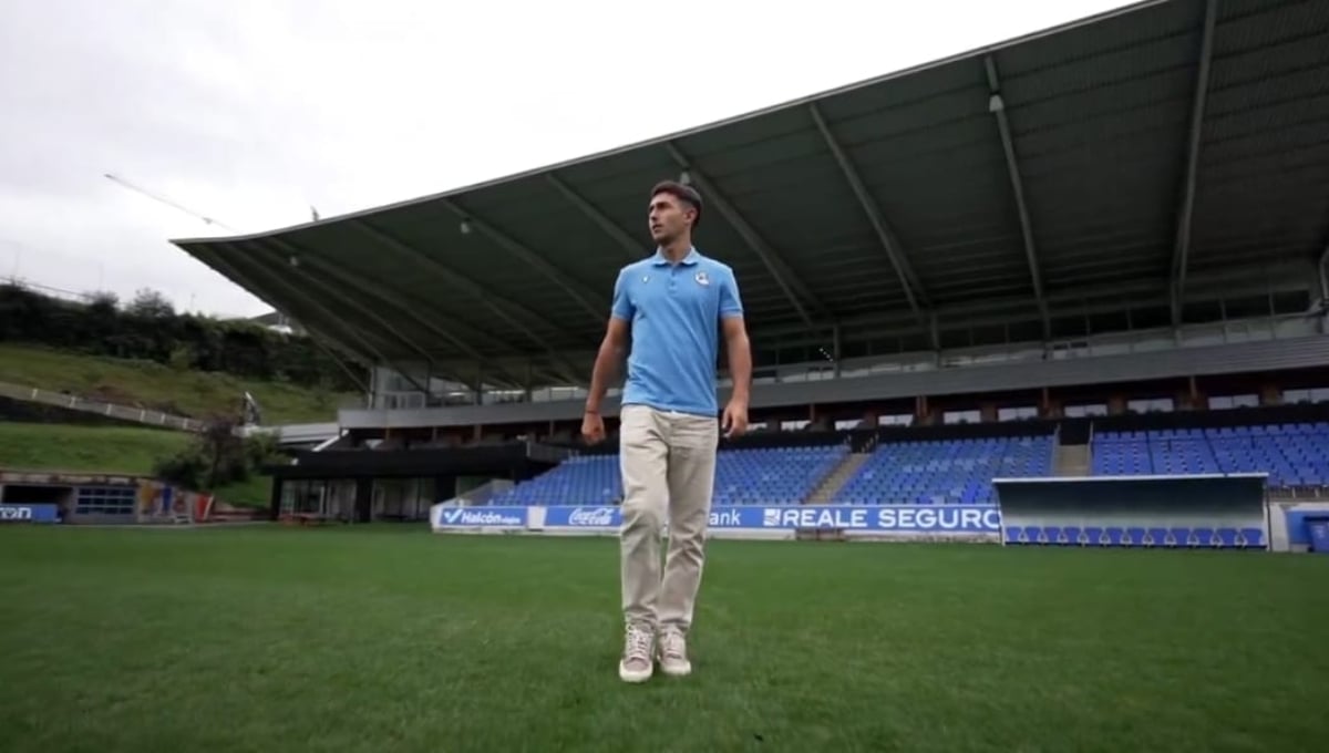 Martín Zubimendi pisa el césped de Anoeta durante su entrevista con LaLiga.LaLiga