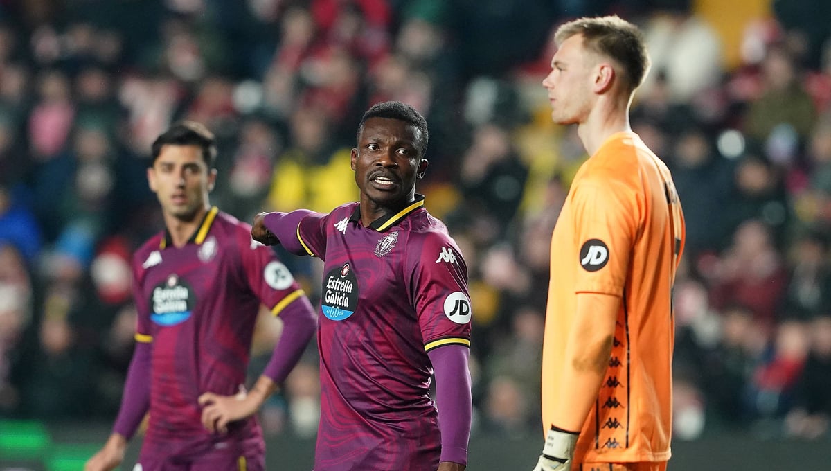 Álvaro Rubio, que afrontará su ‘redebut’ en el estadio pucelano como técnico, con algunas bajas que mermarán al equipo. La más reciente es la de Joseph Aidoo. El central ghanés sufre una lesión muscular en los isquiotibiales y estará fuera de los terrenos de un periodo de entre dos y tres semanas. El futbolista, que llegó el pasado mercado invernal cedido desde el Celta de Vigo, ha sumado tres encuentros consecutivos como titular, hasta que sufrió el percance físico en el duelo ante el Athletic Club en San Mamés.