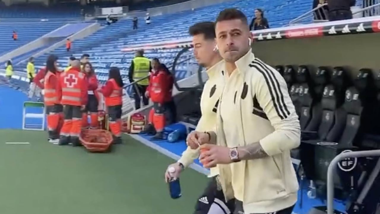 Sergio León, momentos antes de empezar a calentar en el Bernabéu.Twitter / Real Valladolid