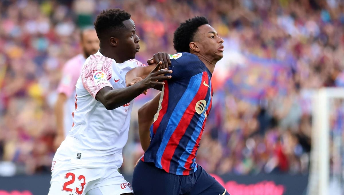 Amath Ndiaye pelea con Alejandro Balde por hacerse con el esférico. CORDON PRESS