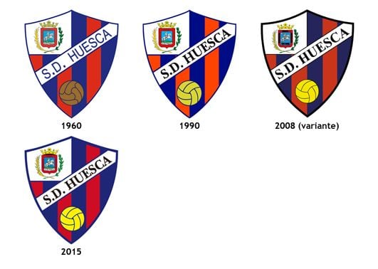 El escudo de la SD Huesca ha sufrido modificaciones obligadas a lo largo del tiempo debido a los procesos de fusión y refundación de sus antecesores, pero siempre ha mantenido características comunes