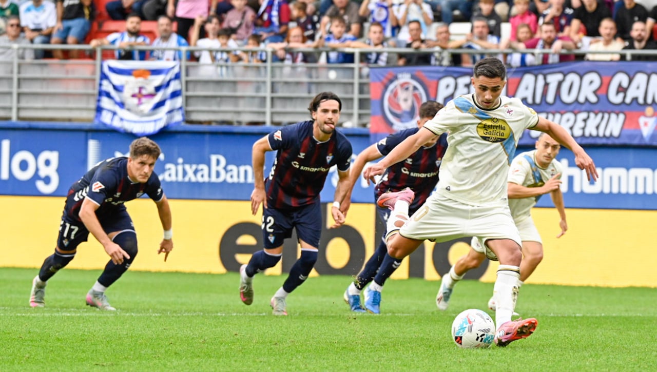 El Eibar sigue invicto este año en Ipurua gracias al gol en el añadido de Adu Ares que evitó la victoria del Deportivo (1-1) y que deja en el aire, a expensas del partido del Cádiz, el liderato en la segunda categoría del fútbol español. La buena racha del conjunto coruñés, que llegó a Eibar con tres victorias seguidas y en lo alto de la clasificación, se estancó en el choque de la séptima jornada a pesar de que llevó el peso del partido y el dominio. En el minuto 12 el colegiado decretó penalti por un derribo dentro del área de Marco Moreno sobre Stoichkov. Lo lanzó Yeremai que adelantó a su equipo en el minuto 14. El empate lo logró Adu Ares que aprovechó un rechace para golpear fuerte dentro del área un balón que tras pegar en un defensa acabó en la red en lo que supuso el empate para los locales.