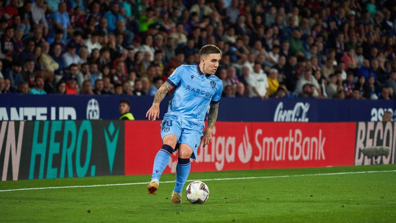 Joni Montiel en un partido con el Levante UD.Cordon Press.