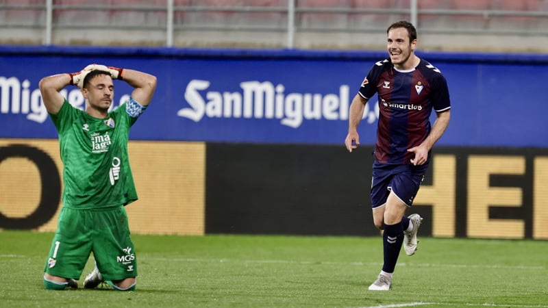 En el minuto 28 el árbitro pitó penalti por un derribo de Corpas sobre Dani Sánchez que, tras la revisión del VAR, quedó en nada. El partido se trabó por las continuas faltas de ambos conjuntos y al primer tiempo se le añadieron cinco minutos, algo que a la postre resultó muy favorable al Eibar porque en el 48 Bautista, en una jugada individual, se escapó de la defensa rival y, tras driblar al portero, marcó el 1-0.