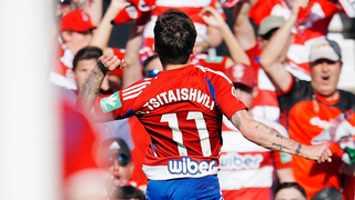 ¡¡GOOOL DEL GRANADA!! Gool del Tsitaishvili. Aprovechó él espacio para entrar por derecha y mandarla al fondo de las mallas con un duro disparo cruzado.