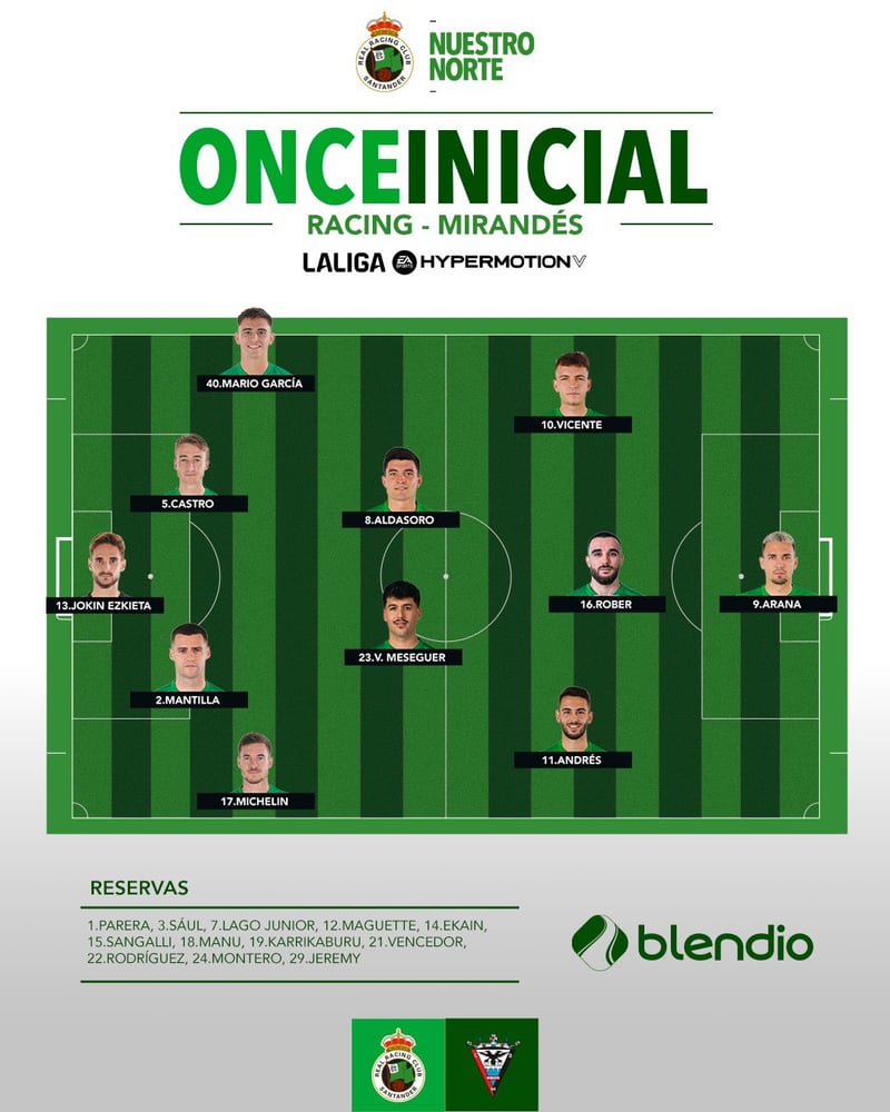 Racing de Santander y Mirandés han dado a conocer los onces titulares con los que iniciarán las hostilidades a partir de las 18:30 horas en el Sardinero.