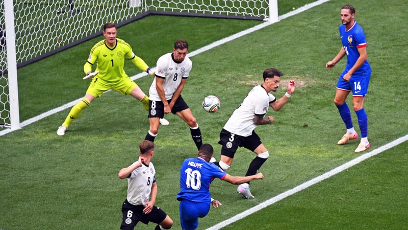 El comienzo del partido mostraba a una Alemania con intensidad, que tenía más la pelota que los franceses y que llegaba al área pero era imprecisa en el remate. Francia, víctima de España en las semifinales, tuvo un momento alrededor del minuto 20 con dos buenas llegadas, un remate de Rayan Cherki y un cabezazo de Loïc Badé y, en ambas ocasiones, Marc-André ter Stegen reaccionó con buenas paradas despejando a saque de esquina.
