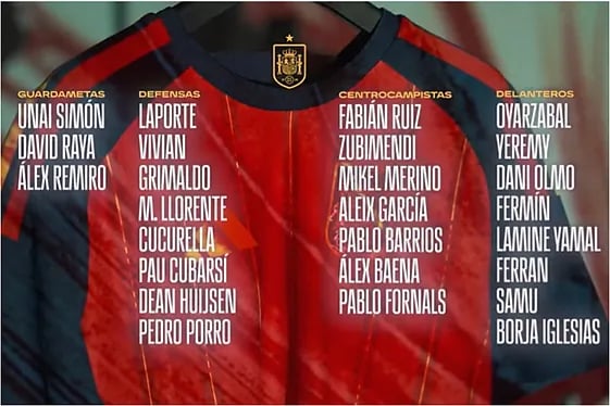 Delanteros: Oyarzabal, Yeremy, Dani Olmo, Fermín, Lamine Yamal, Ferran, Samu y Borja Iglesias.