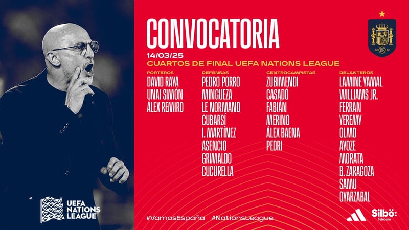 ¡Bienvenidos! Desde ESTADIO Deportivo seguiremos al detalle la nueva convocatoria de Luis de la Fuente; la primera de la selección española en este 2025. Y es que la Roja no competía desde el pasado mes de noviembre.