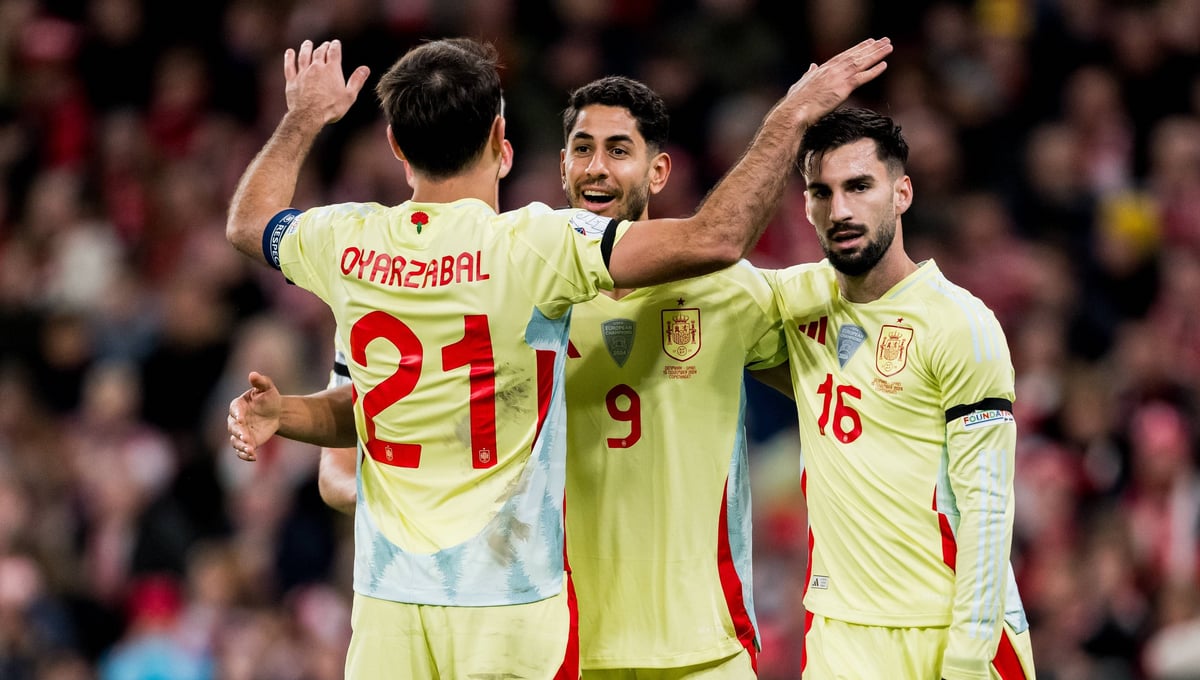 España: David Raya; Pedro Porro, Vivian, Laporte, Cucurella; Zubimendi (Marc Casadó 70'), Dani Olmo (Nico Williams 70'), Mikel Merino (Pedri 80'); Oyarzabal, Álex Baena (Fabián 62') y Ayoze (Morata 69')