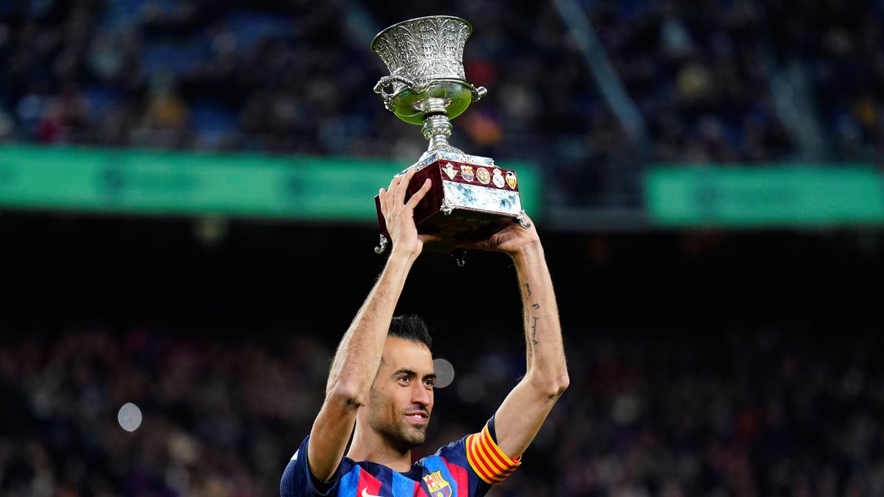 Busques ofrece la Supercopa en la previa del Barcelona - Getafe, en la temporada 2022/2023 de LaLiga.CORDON PRESS