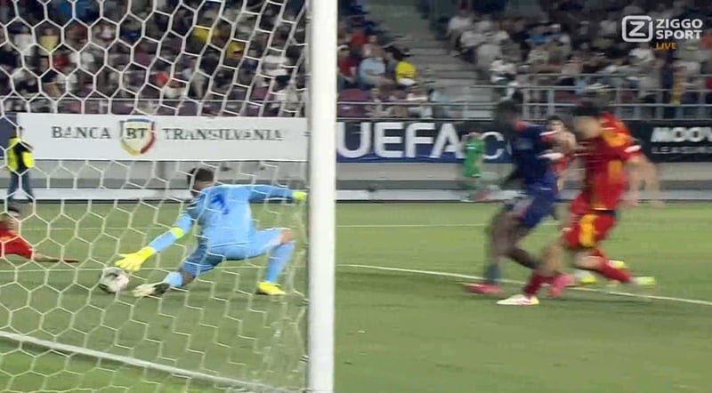 Así, a once del intermedio, una mala cesión de un defensor visitante dejó a Óscar Marcos solo delante del portero, pidiéndose penalti tras su caída en el área, aunque la jugada siguió e Izan Merino probó los reflejos del guardameta del Sparta de Praga desde la frontal. Con el periodo inicial cumplido, Aymen Sliti trató de sorprender al otro arquero con un zurdazo raso y, si bien el despeje en corto dio chances de nuevo a Konadu, la rápida reacción de Andrés Cuenca evitó males mayores antes de que Robert Hennessy señalase el camino a los vestuarios con todo aún por decidir en Bucarest. Nada más reanudarse el juego, Tygo Land mandó un derechazo desde el semicírculo contra el poste, aviso a navegantes que hizo despertar pronto a la 'Rojita'. La respuesta fue igual de contundente... y doble: lanzamiento lejanísimo de Antoñito Cordero que también 'escupe' el palo y, a continuación, centro al segundo palo de Pablo García que cabecea Óscar Marcos contra el travesaño.