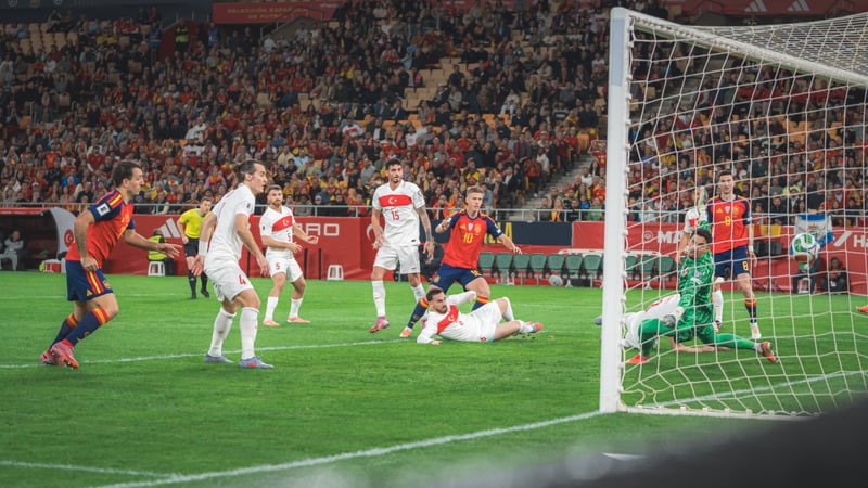 Jarro de agua fría tremendo para el público español, todo eso sumada a la gran celebración turca sobre el terreno de juego. No era para menos y es que, a pesar de que aún le faltaban seis goles para clasificarse de forma directa, el remontar a España en su feudo no es plato menor. Y es que España empezaba a contagiarse de nuevo de ese ambiente de La Cartuja, que se mostraba desangelada y sin apenas motivación. No se encontraban los de Luis de la Fuente, que veían como su mayoría de ocasiones eran despejadas por la defensa turca.