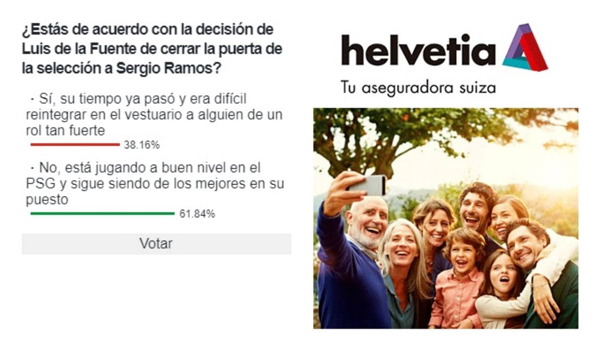Pues bien, la afición también se ha empezado a manifestar en contra del nuevo seleccionador, tal y como lo revela una encuesta realizada por ESTADIO Deportivo a sus lectores. Este diario lanzó la siguiente pregunta: ¿Estás de acuerdo con la decisión de Luis de la Fuente de cerrar la puerta de la selección a Sergio Ramos? Y el 'pueblo' ha hablado en favor del jugador sevillano. Un 38,16% de los participantes considera que "Sí, su tiempo ya pasó y era difícil reintegrar en el vestuario a alguien de un rol tan fuerte", mientras que el 61,84% opina que "No, está jugando a buen nivel en el PSG y sigue siendo de los mejores en su puesto".