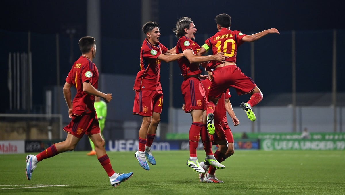 Bajo las órdenes de José Lana, España explotó su mayor talento. Jugadores como Gonzalo García o Dani Pérez se sumaron a Ilias en la generación de acciones de peligro y el partido se rompió nada más superar el cuarto de hora. A balón parado, con el buen centro de Ilias en el saque de esquina, remataba Yarek con la zurda para hacer el primero.
