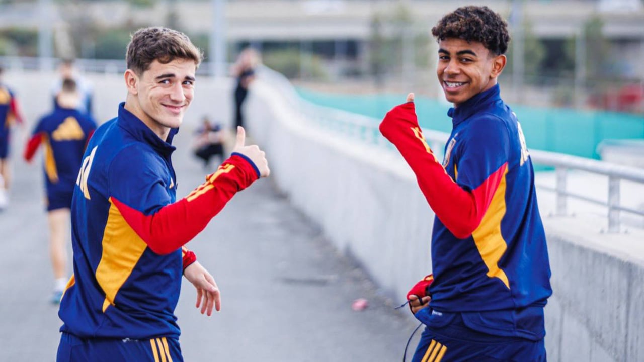 Cualquiera que vea la foto de esta noticia - y no esté muy puesto - podría pensar que es imposible que la misma trate de la selección absoluta de España. Sin embargo, tanto Gavi como Lamine Yamal son el presente y también están llamados a ser el futuro de 'La Roja'. Y en el caso de este último, el partido que disputa el combinado de Luis de la Fuente esta noche en Valladolid ante Georgia podría ser clave para que ya jamás pueda lucir otros colores como internacional que no sean los españoles.