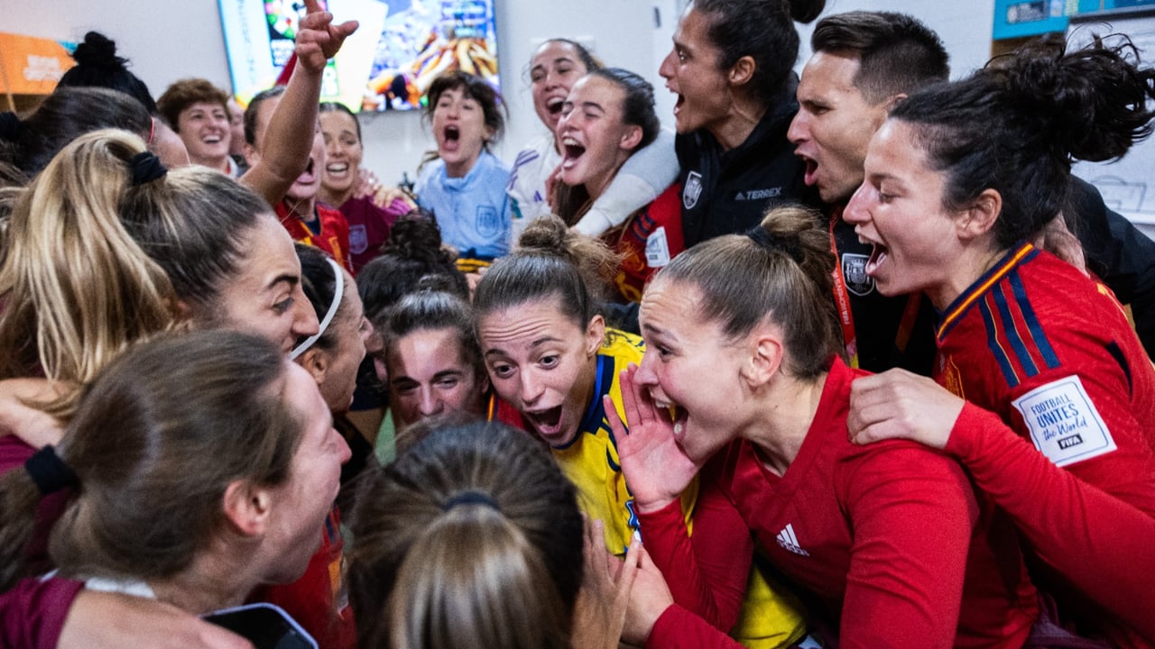 Las jugadoras de la selección española celebran el pase a la Final del Mundial en los vestuariosTwitter - @SEFutbolFem