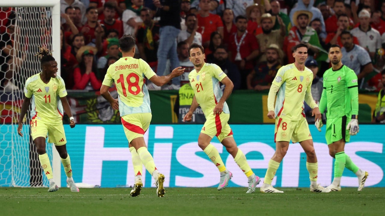España rompe con su gran racha de resultados y pierde en penaltis la final de Nations League frente a Portugal. El partido, en todo momento, estuvo muy igualado y llegó al final de los 120 minutos con empate en el marcador. La ruleta de los penaltis decantó la balanza hacia los lusos después de que los portugueses no fallasen ningún penalti y Morata se topase con Diogo Costa en el cuarto lanzamiento. La desilusión era evidente en la cara de los jugadores españoles que no bajan los brazos y prometen volver a levantar un título para España.