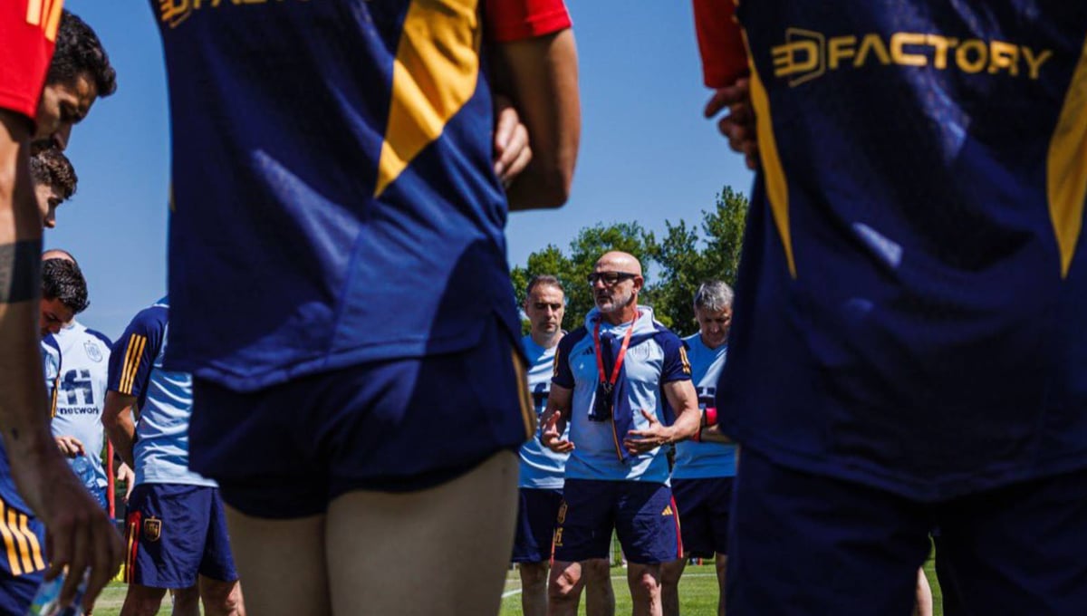 Luis de la Fuente, en la charla previa de un entrenamiento.Twitter / Selección Española