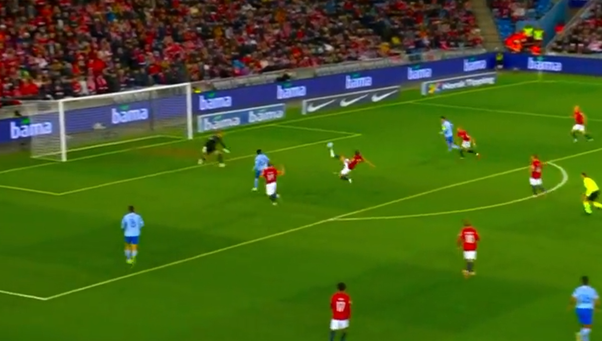Todo ocurrió sobre el minuto 20 de la primera parte. España estaba dominando con claridad a Noruega, encerrándola en su campo, cuando en una jugada combinada, Dani Carvajal mandó un centro al corazón del área en dirección de Ansu Fati. En ese momento, un defensa de Noruega desvía el balón y cuando este se iba a introducir en la portería fue empujado por Álvaro Morata para poner el 0-1 en el marcador.