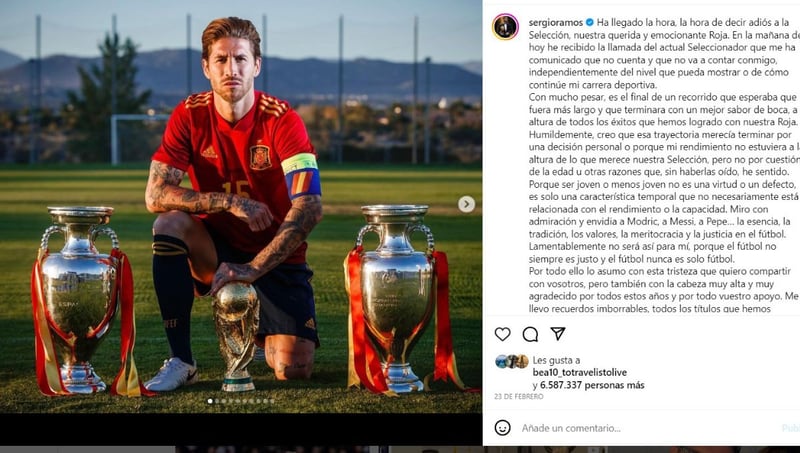 Hay que recordar que Sergio Ramos es el futbolista con mayor número de internacionalidades de la historia, con 180, en los que marcó 23 goles para España. Y ganó tres títulos (dos Eurocopas y el Mundial 2010) jugando en el once titular.