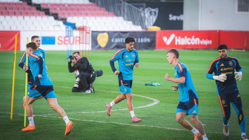 La Selección Española se ha entrenado en la ciudad deportiva José Ramón Cisneros Palacios, instalaciones del Sevilla FC, horas antes de jugar el partido decisivo contra Turquía correspondiente a la fase de clasificación para el Mundial 2026. Una sesión que se ha llevado a cabo ahí para evitar dañar el césped del Estadio La Cartuja que es donde se disputa el encuentro este martes. Un entrenamiento en el que ha habido muy buen ambiente y en el que ha estado presente Jesús Navas, ex jugador de la Selección Española, que ha visitado a sus antiguos compañeros.