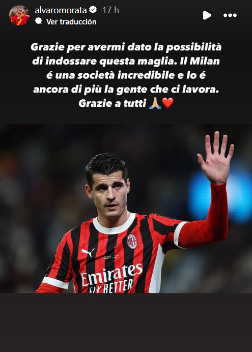 "Gracias por darme la oportunidad de vestir esta camiseta. El Milán es un club increíble y la gente que trabaja allí lo es aún más. Gracias a todos", escribió el delantero en su cuenta de Instagram.