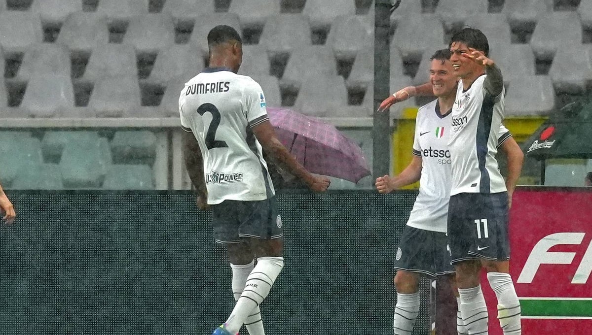 La 'unidad B' del Inter, con Josep Martínez bajo palos, Darmian, De Vrij y Carlos Augusto en defensa Zielinski y Asllani en el centro del campo y con Zalewski, Correa y Taremi arriba, resolvió a la perfección un partido muy extraño durante la primera mitad, interrumpido dos veces por condiciones ajenas al juego. La primera, nada más empezar, por lo que apunta a ser una caída de un aficionado desde la grada alta. Y la segunda, justo antes del final del primer acto, por la tromba de agua que cayó en Turín.
