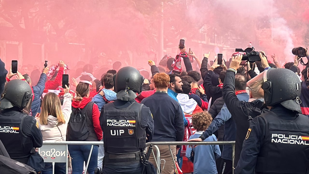 Miembros de la UIP antes del último derbi en Nervión.Lince