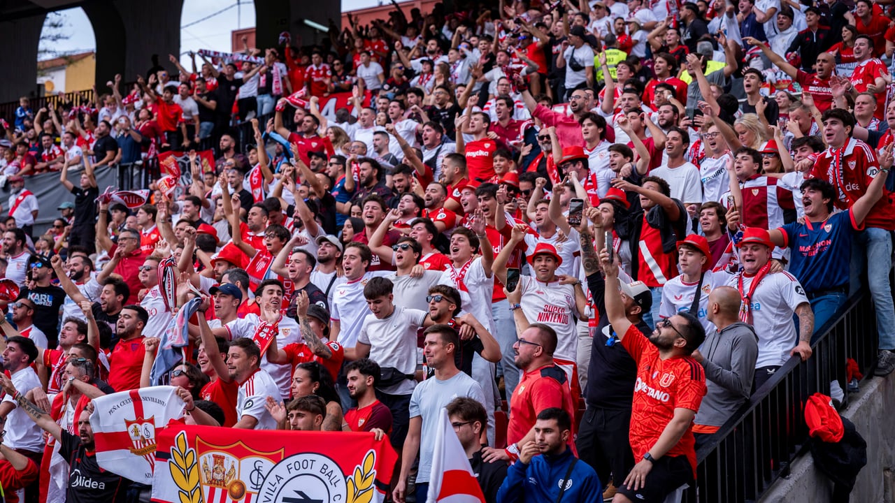 La afición del Sevilla celebra la victoria en VallecasCordon Press