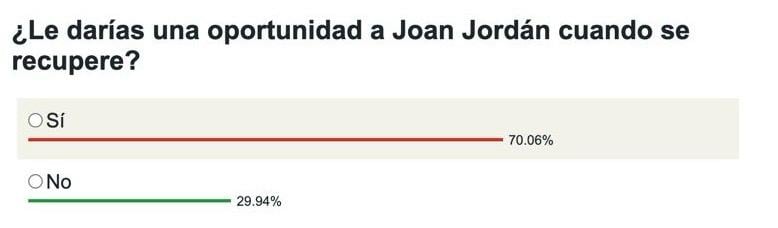 En Estadio Deportivo, hemos querido preguntar a la afición del Sevilla si ellos le darían una nueva oportunidad a Joan Jordán en el conjunto nervionense y la respuesta ha sido contundente. El 70,06% de los votos están de acuerdo en darle la ocasión al futbolista para demostrar sus ganas de volver a triunfar como sevillista. El 29,94% restante no volverían a contar con él en el club y no irían en la misma línea del entrenador del Sevilla. El centrocampista apunta a volver a la convocatoria tras el parón para el choque ante el Mallorca y podría jugar sus primeros minutos.