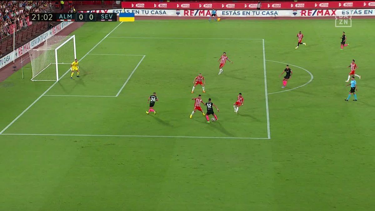 La tendencia no cambió, con el achique foráneo complicando mucho a los de Rubi y Fernando salvando los muebles. A los diecisiete minutos, el meta murciano desviaba el lanzamiento a bocajarro del 'Coco', que se intercambió los papeles con un Rafa Mir que había ganado bien la línea de fondo. En una acción calcada, Lamela sí remacharía a la red, pero el Papu estaba en claro fuera de juego. El campo se inclinaba un poco más hacia el lado almeriense en el ecuador del primer tiempo. Jordán, con una falta desde la frontal que se perdió por poco ligeramente alta, certificaba la superioridad sevillista, que se plasmaría enseguida en el marcador.